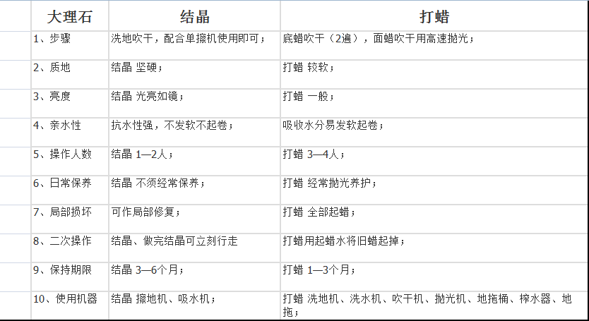 大理石進(jìn)行晶面保養(yǎng)時(shí)必須具有一定光澤度(60度以上)、平整度、無深度劃痕、和嚴(yán)重污損為基礎(chǔ)。